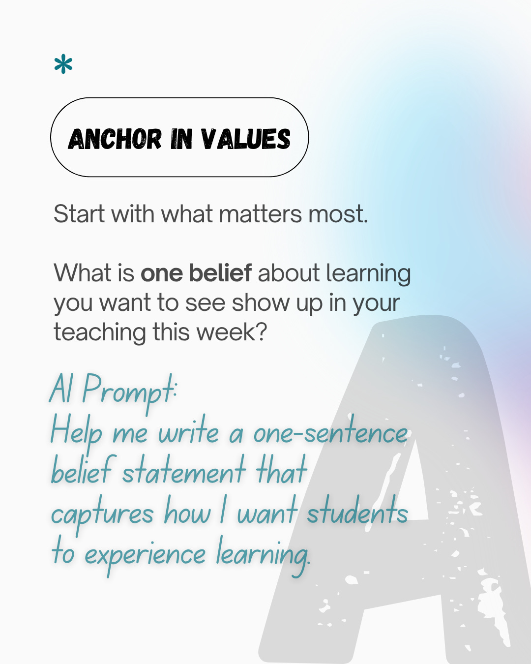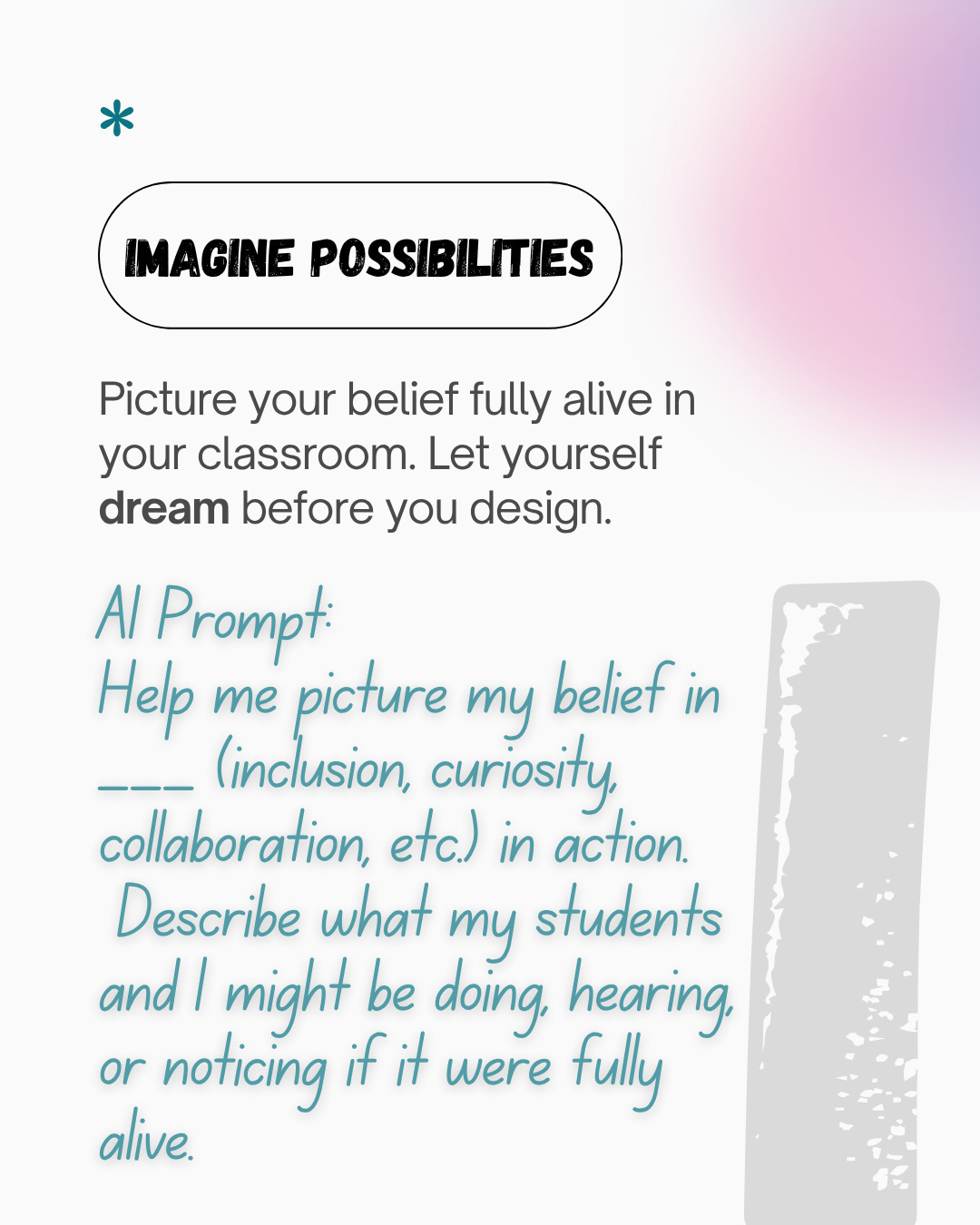 “Help me write a one-sentence belief statement that captures how I want my students to experience learning.”