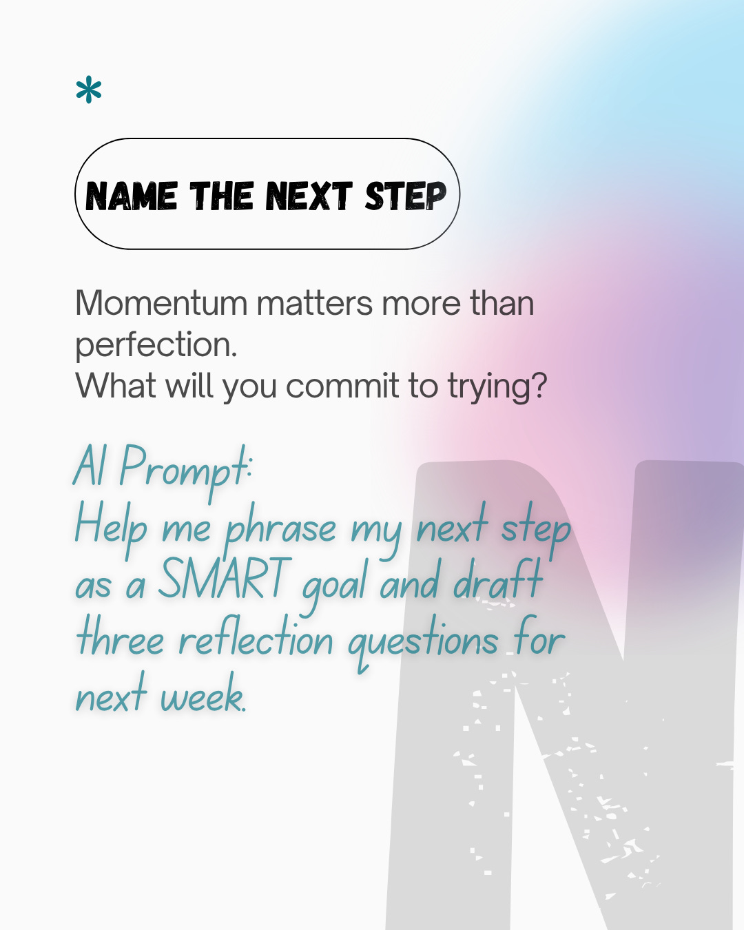 And when I finally took a step forward, I asked it to help me phrase that next step clearly enough to share with my PLC. (And for myself, tbh.)